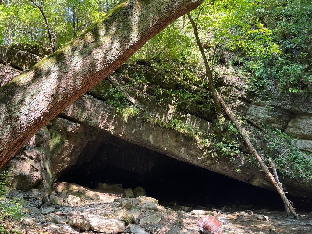 Time didn’t feel real while we were exploring Bilger’s Rock. The hour and a half we had with our guide zipped by. During that time, we explored the Devil’s Dining Room as a large group and broke off into smaller pairs to slip into the Devil’s Kitchen or Ice Cave. Eventually, we emerged at the “entrance” to Bilger’s Rock, the site of a large carving.