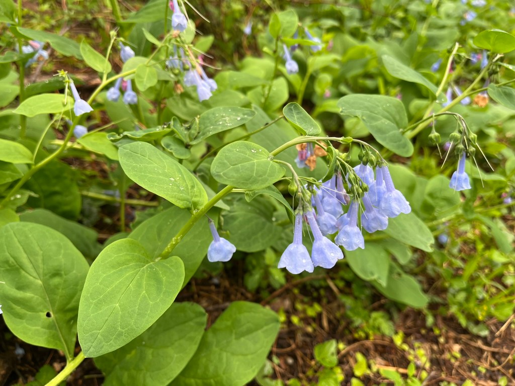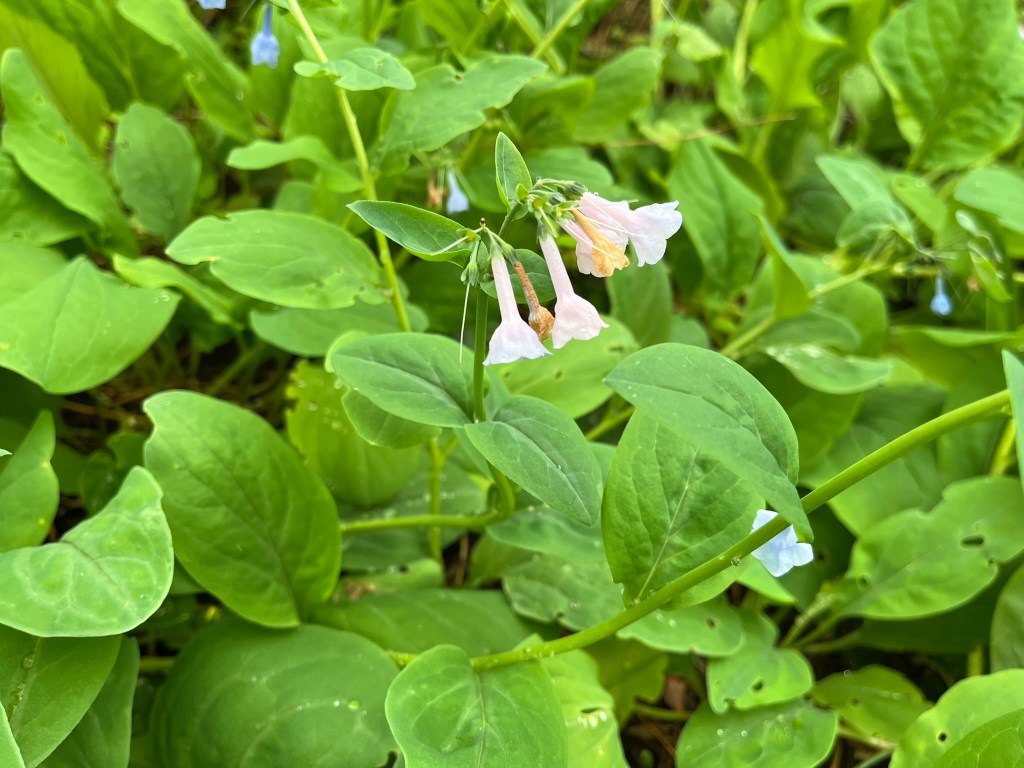 While hiking, the huge variety of spring ephemerals growing at the park delighted me. I saw many species, including: Jack-in-the-Pulpit, trilliums, Wild Geranium, and Wild Pinks. Virginia Bluebells grew in masses- some of the plots also had pink and white varieties. White bluebells are rare, and carry the scientific name Mertensia virginica forma berdii. I saw many clumps of white bluebells, again feeling it was a good omen.